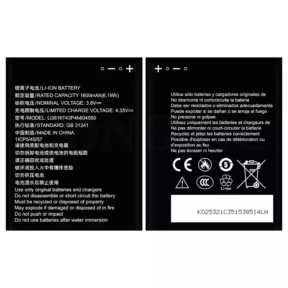 Battery Li3814T43P4h604550 for ZTE Blade L130/Z2335CA/Grand MAX 4550