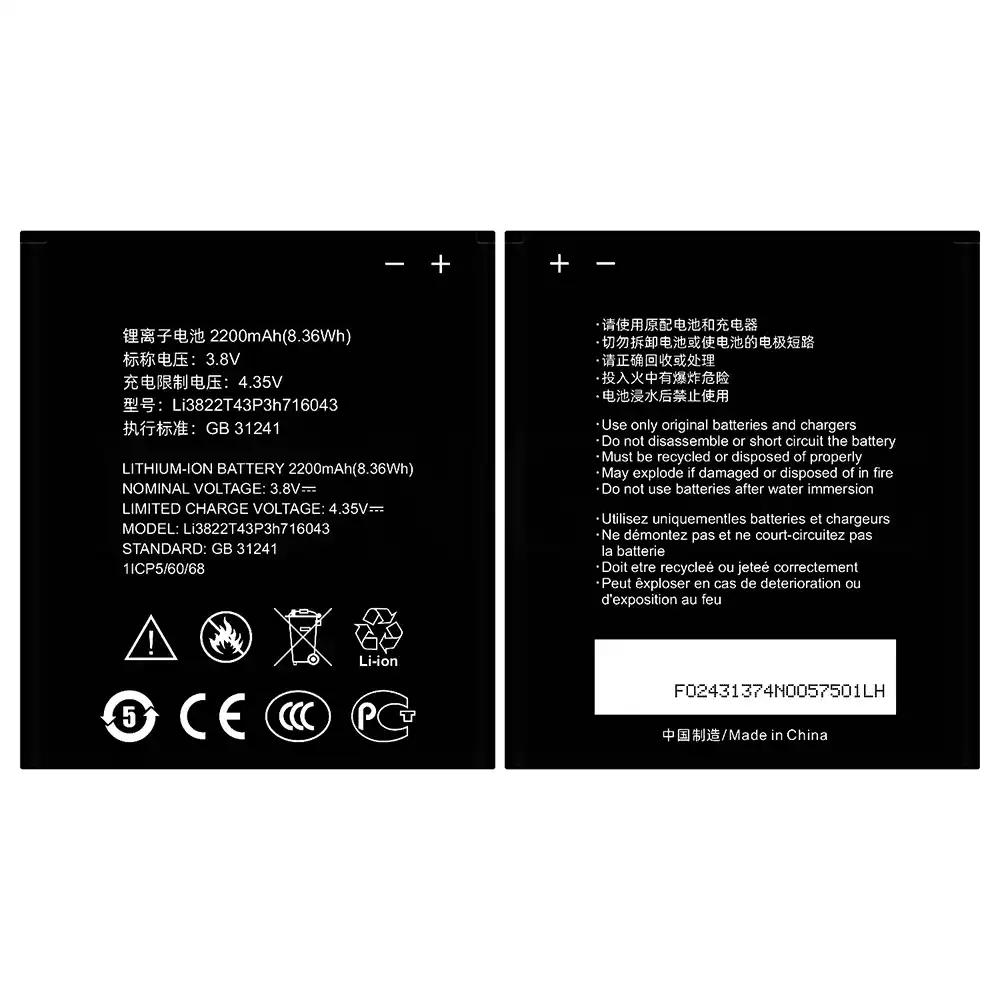 Phone battery Li3822T43P3h716043 for ZTE Blade A320/BA320