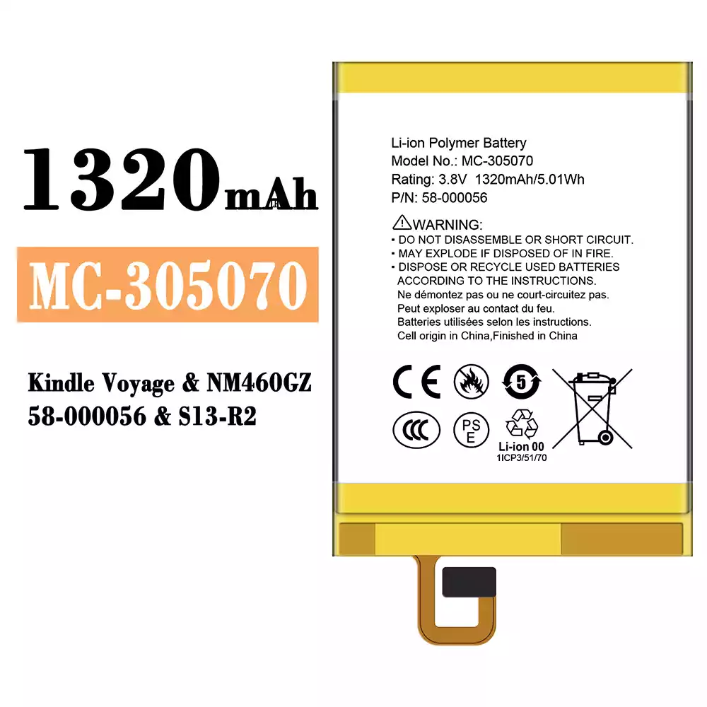 Battery MC-305070 for Amazon Kindle Voyage/NM460GZ/58-000056/S13-R2