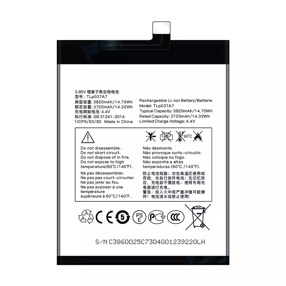 Battery TLP037A7 for Alcatel TCL Plex/T780H