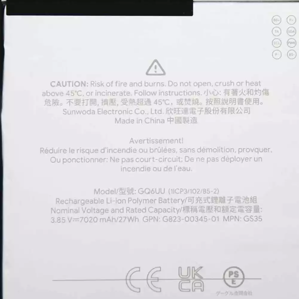 Tablet battery for GQ6UU GPN:G823-00345-01 MPN:GS35